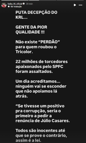 2 de 4Baby critica o presidente do São Paulo • Reprodução / Instagram